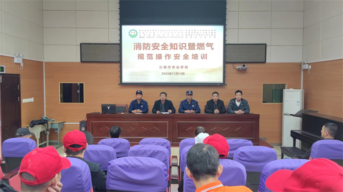 11月14日,三明市农业学校邀请沙县区消防支援大队到校开展消防安全知识暨燃气规范操作安全培训。消防支援大队宣讲员陈钰婷从多个角度阐述了实操作业消防安全的重要性,并就食堂、实训基地作业现场火灾来临时,该如何应对做了详细的讲解并强调了燃气使用规范。讲座结束后,全体培训人员移步户外参与灭火演练。实训基地教师、食堂工作人员在消防员的讲解下,实际操作使用灭火器扑灭初期火灾。