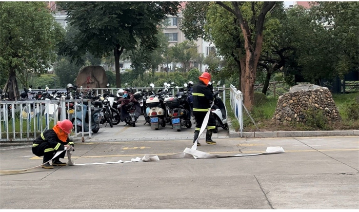 11月9日上午,学校义务消防员为提高快速处置能力,验证火灾应急处置程序的可行性,于校门口停车棚外,模拟扑灭电动自行车自燃。演练过程中,学校义务消防员按照火灾应急处置预案,身着防火服,在三十秒内将火情扑灭,过程迅速有效。