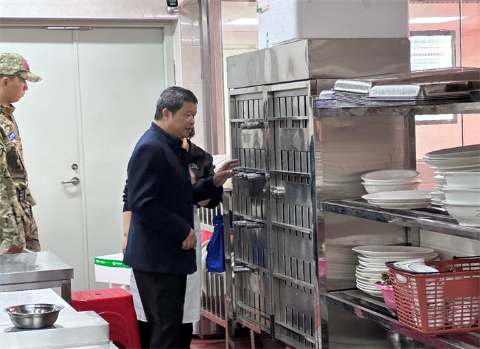 在排查过程中,检查组首先检查了食堂烹煮设备的日常使用情况,并对食材仓库的冷库温度、食品质量、仓储条件、后厨卫生、员工操作规范、刀具使用、用水用电等方面一一排查,同时还检查消防设施设备的维护情况。