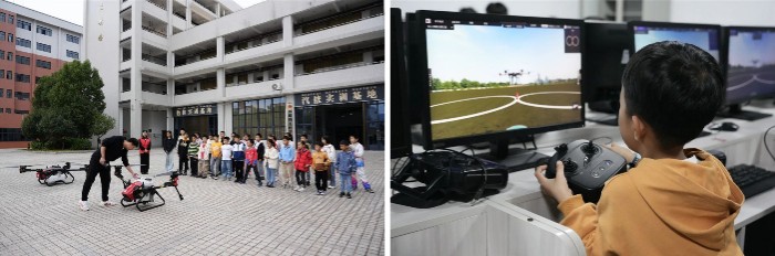 为庆祝中国人民空军成立75周年,11月9日,我校与区校外活动中心联合在“无人机职业劳动体验区”举办了“童心向党 强国有我”传承红色基因无人机展示及操作体验活动。陈洪斌、吴维桂两位专业老师带领孩子们观看了植保无人机的实飞演示、无人机编队表演,并指导他们进行了无人机模拟飞行。从植保无人机的精准作业到无人机编队的精彩表演,再到模拟飞行的亲身体验,孩子们不仅领略到了科技的魅力,更在心中种下了探索未知、勇攀科技高峰的种子。