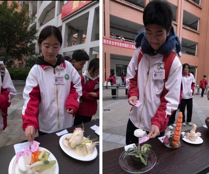 一等奖(2名):23食品智能加工技术五年专邓玉琳《花塔争辉》、23中餐烹饪1班曹雪莲《金菊报春》